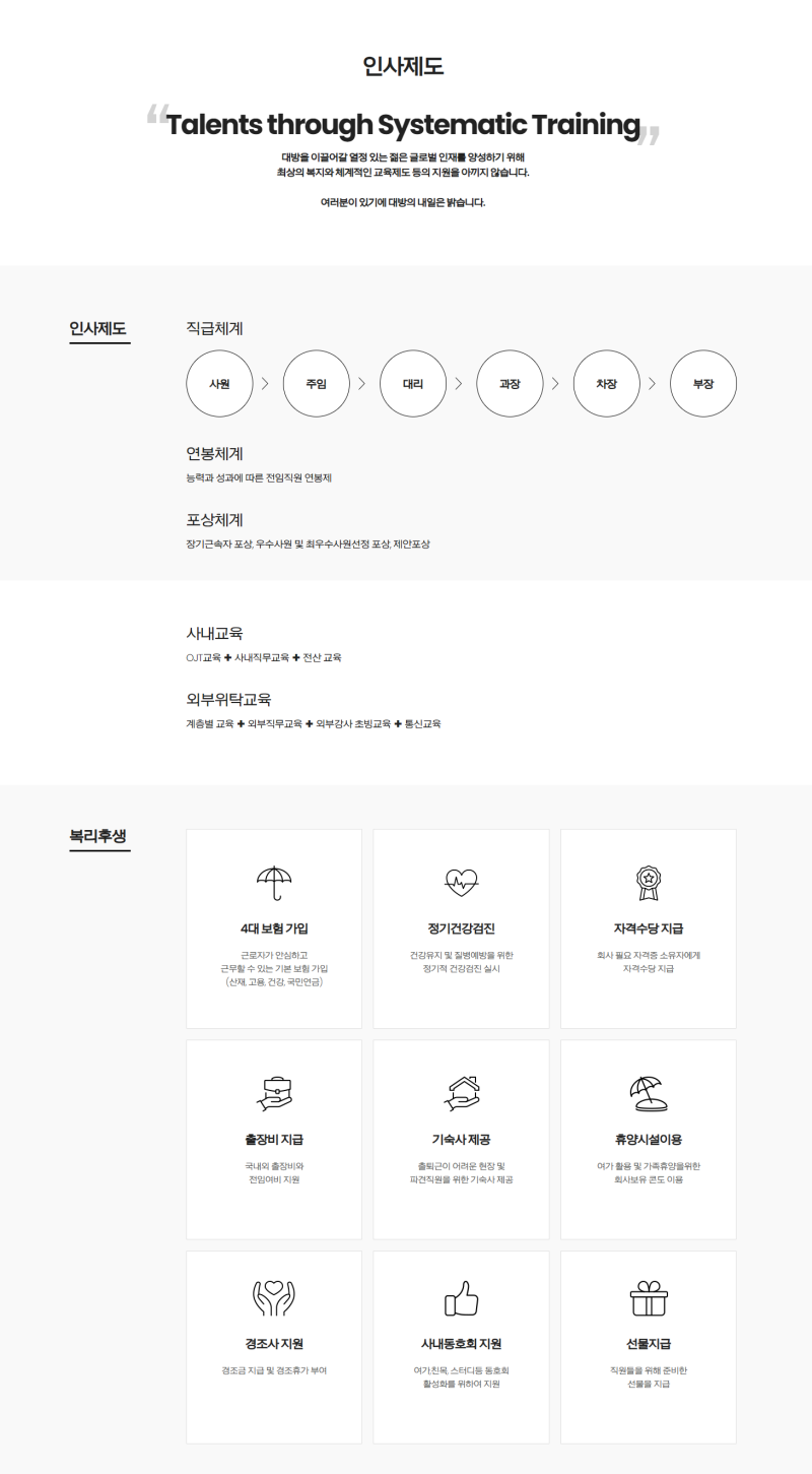 이러한 대기업의 채용은 그만큼 경쟁률이 치열하지만, 합격 시 안정적인 근무 환경과 높은 연봉, 다양한 복지 혜택을 누릴 수 있다는 장점이 있습니다. 또한, 체계적인 교육 시스템을 통해 개인의 역량을 꾸준히 개발할 수 있으며, 다양한 분야의 전문가들과 협력하며 성장할 수 있는 기회를 얻을 수 있습니다.