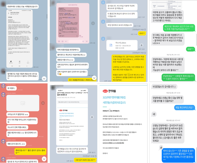 - >> **채용공고 및 이력서/초안 자소서 공유:** 지원하시는 직무와 작성하신 자료를 보내주세요.