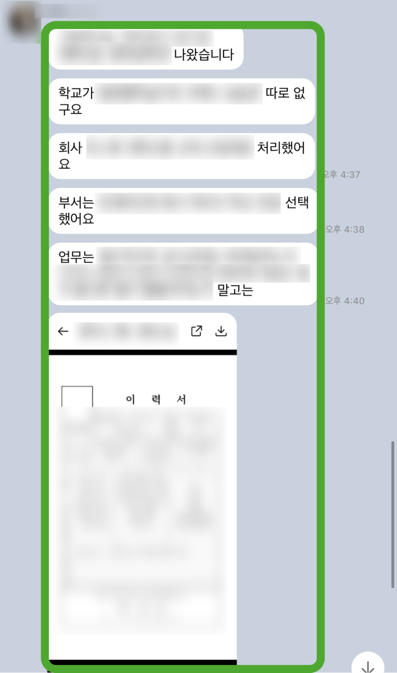 김민준 님께서는 기존에 작성하셨던 자기소개서와 이력서를 공유해주셨습니다. 솔직히 말씀드리면, 경험 자체는 풍부했지만 직무와의 연결성이 부족하고, 기업에 대한 이해도가 드러나지 않는 부분이 많았습니다. 특히 성과 위주로 작성하기보다는 과정 위주로 서술되어 있어, 인사담당자가 지원자의 역량을 한눈에 파악하기 어려운 점이 있었습니다.
