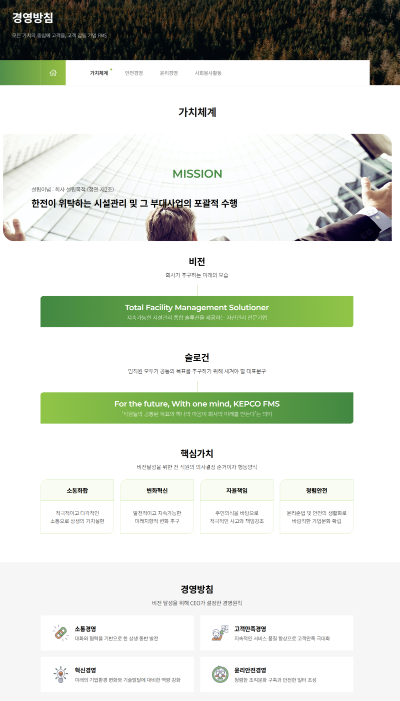 한전에프엠에스 분석자료 (핵심가치, 비전, 인재상)