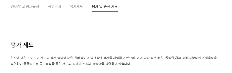 • 인재상: 창의적이고 도전적인 인재, 고객 중심적인 인재, 소통하고 협력하는 인재