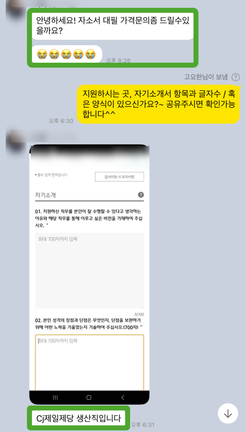 #자기소개서 #자소서 #자기소개서대필 #자소서대필 #자기소개서첨삭 #자소서첨삭 #취업컨설팅 #취업준비 #합격자소서 #대기업자소서 #신입자소서 #CJ제일제당 #CJ제일제당자소서 #CJ제일제당채용 #생산직자소서 #자기소개서전문가 #취업성공 #서류합격 #첨삭전문가 #자기소개서의뢰 #취업고민 #채용직무정보#생산직자소서#채용공고#자소서예시#자소서대행#자기소개서대행#자소서항목#자기소개서문항#합격후기#이력서#경력기술서#직무수행계획서#연봉#자소서쓰는법#자기소개서쓰는법