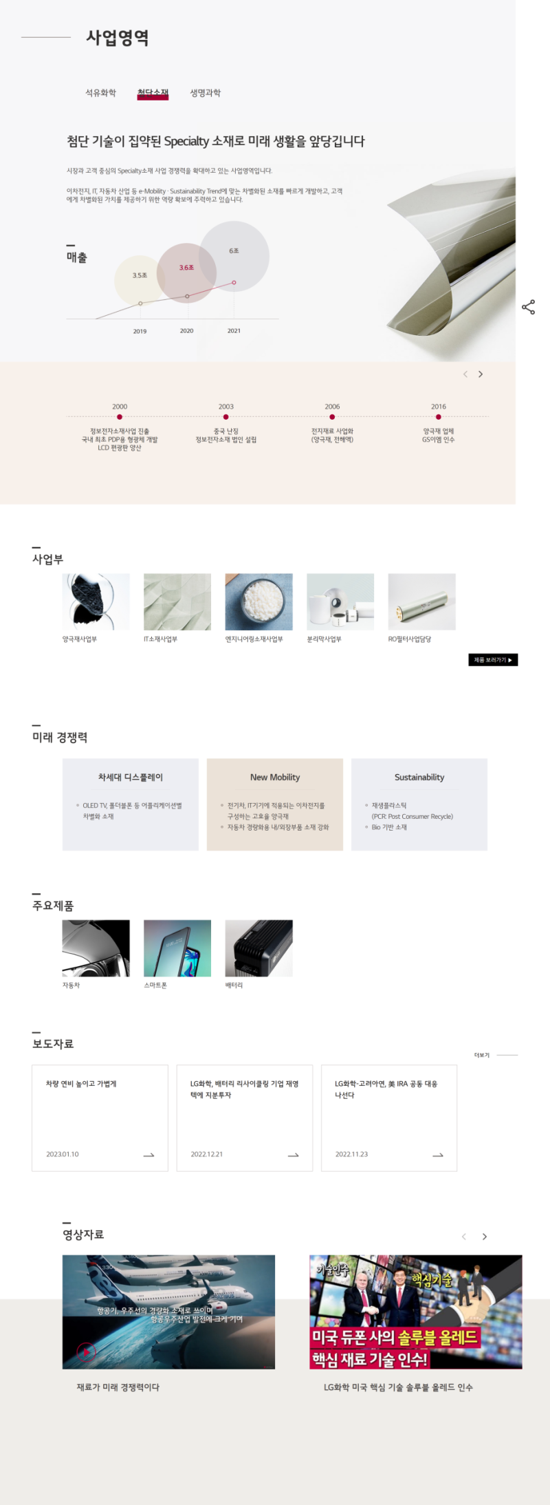 - ✔️ 주요 사업: 석유화학(PE, PVC 등), 첨단소재(양극재, 엔지니어링 플라스틱 등), 생명과학(신약 개발, 바이오 의약품), 전지재료(배터리 소재) 등으로 구성되어 있습니다.